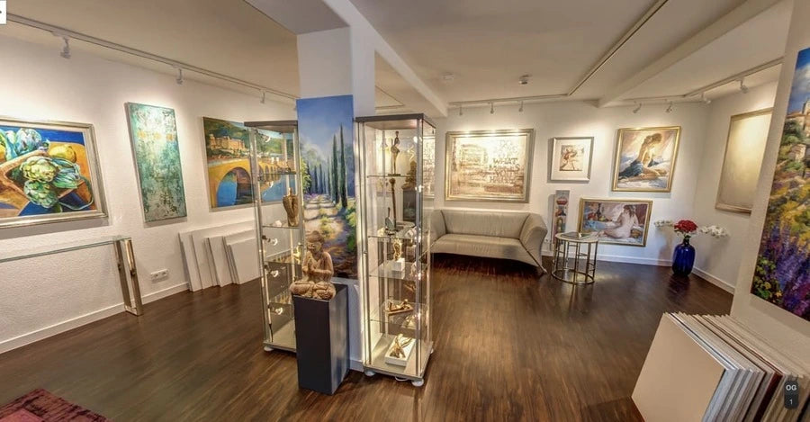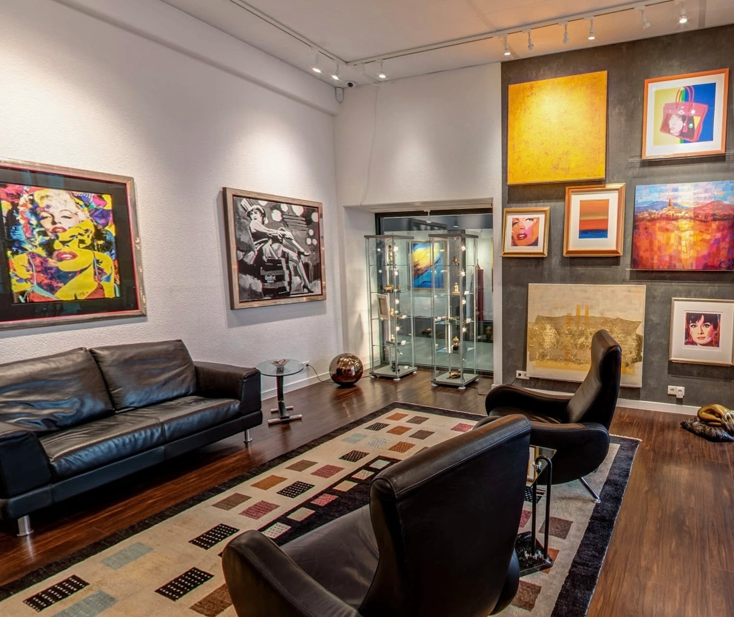 In unserer Galerie auf zwei Etagen bieten wir Ihnen eine breite Auswahl an Kunstwerken renommierter Künstler. Auf über 400 Quadratmetern Ausstellungsfläche finden Sie Gemälde, Grafiken und Skulpturen.
